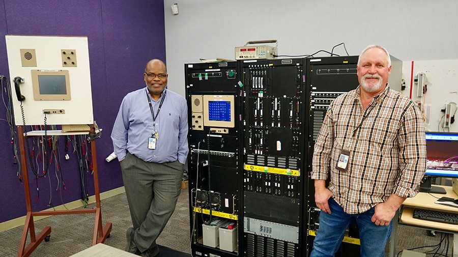 During 2017, Mike Durham, an Electronics Engineer and Instructor in the FAA Academy, was working with members of the Department of Defense (DOD) to locate an Enhanced Terminal Voice Switch (ETVS), which they were decommissioning. This is equipment that handles communications among Air Traffic Controllers and pilots, radio, and telecommunications in the Terminal and TRACON environments. The FAA Academy’s training on this communication equipment helps to train Tech Ops Technicians in the field who support and maintain Air Traffic and National Airspace System operations. While the equipment is several years old, in its day, a new system would have cost over a million dollars to purchase. Thanks to Durham’s efforts and collaborations with the DOD, members of the AJW team and Bill Howard, Aviation Technical Systems Program Office, they were able to furnish the FAA Academy with an ETVS system to be located at the Aeronautical Center at no cost! Durham was the driving force behind obtaining this new equipment. With the assistance of long timer fellow instructor and friend, Lamar Duverger, together they installed and configured the system in a designated laboratory space. In no time, the laboratory area was up and available to conduct training in early 2018. The provision of having an added Voice Switch is a huge asset to the Academy curriculum and is certain to improve the overall quality of the ETVS course. “We have less downtime in the classroom, and the learning process is more efficient,” says Duverger. “We can better adapt to different paces of learning to better accommodate the students.”