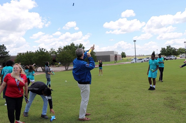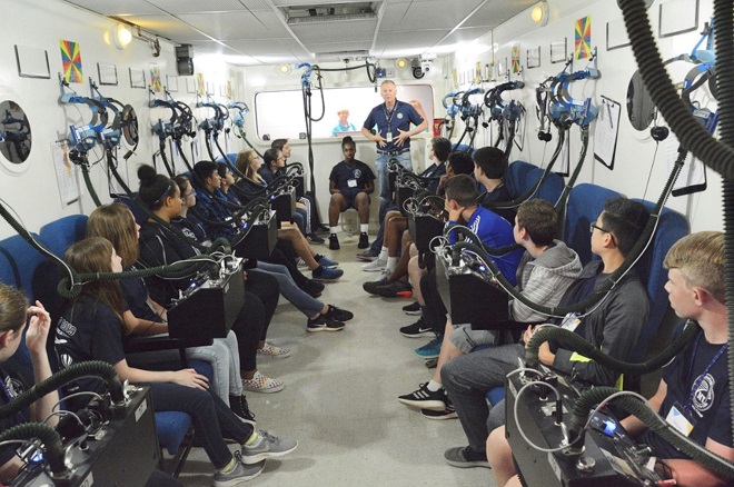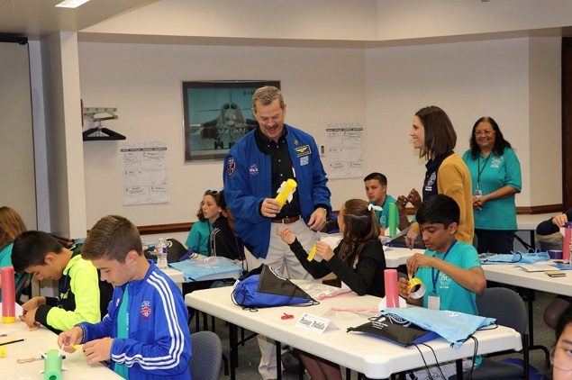 This year, both camps had the fortunate opportunity to have special guests visit the camp. During both camps, Astronaut Scott D. Altman, who was the pilot of Space Shuttle Columbia in 1998 during the STS-90, the Neurolab mission, where they studied the effects of microgravity on the brain and the human nervous system, opted to pay a visit to these camps. In 2000, Altman was the pilot of Atlantis during a 12-day mission to prepare the International Space Station for the arrival of the first permanent crew. On his final two missions, he commanded Columbia in 2002, which was the fourth mission to service the Hubble Space Telescope. When he commanded Atlantis on the STS-125, it was the fifth and final mission to service the space telescope which extended its useful lifetime. “Scooter” as Altman is often called, interacted with each of the campers, giving further insight into their NASA and astronomy lessons while lending words of encouragement along the way. Many were intrigued to learn that he had a role in flying the F-14 for the filming of the 1986 movie Top Gun. Altman comments, “It was incredible. Most Navy pilots don’t get to buzz an air traffic control tower, like was done in that movie. But since it was Hollywood, they wanted nine different takes,” Altman shrugs with a smile.
