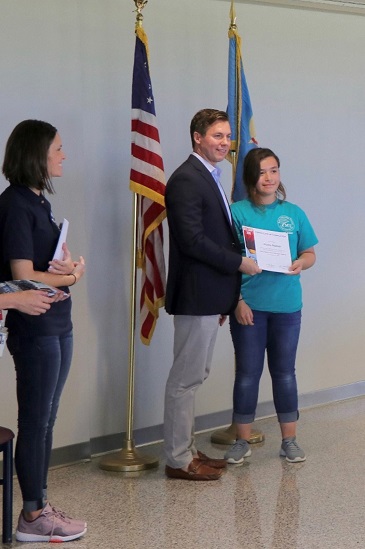 During the second week of ACE camp, we had the privilege of having Oklahoma State Senator Adam Pugh of Edmond participate in the graduation activities. Senator Pugh has served in the Oklahoma Legislature since 2016 and is a member of the Senate Appropriations and Transportation Committees. He brought his love of aviation, his experience as a former member of the Air Force E-3 AWACS crew and shared the challenges of growing up in a single-parent home, getting into and paying for college, and how ROTC helped in his career choices. Senator Pugh even stayed to take pictures and present each camper with their certificate of completion.