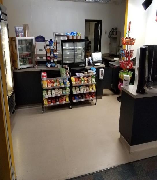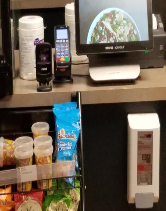 For a limited time, an Aramark employee will be on-site to assist with purchases and help with regular sanitizing. Disinfectant wipes, gloves, and sanitizer are available at the location for customers.