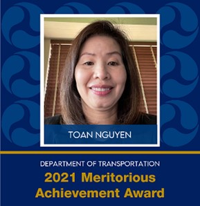 Toan Nguyen won the Meritorious Achievement Award for her efforts on the Enterprise Services Center Visioning Team. Under Nguyen’s leadership, ESC made significant strides in implementing various intelligence automation tools. She also established contracts with all major wireless companies that not only provided the devices at zero cost to the agency, but also provided lower negotiated telecommunication rates through shared data plans, generating an estimated $3 million cost savings/avoidance per year.