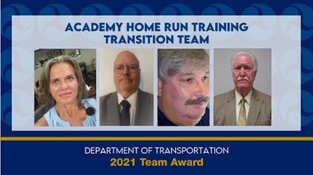 The FAA Academy’s Home Run Training Transition Team (which included members from AVS) were recognized for their leadership in expanding virtual training possibilities in response to the global COVID-19 pandemic. Their enterprise-level effort increased the number of courses available online from a handful before the pandemic to 76 by October 2020. In addition to these training workshops, the team leveraged the existing Virtual Instructor Training course already offered by the FAA Academy, which provided foundational skills for teaching in a live, on-line environment. This effort allowed 140 students to be trained over a six-month period, increasing the number of students trained by 47 percent without diminishing any of the course content.