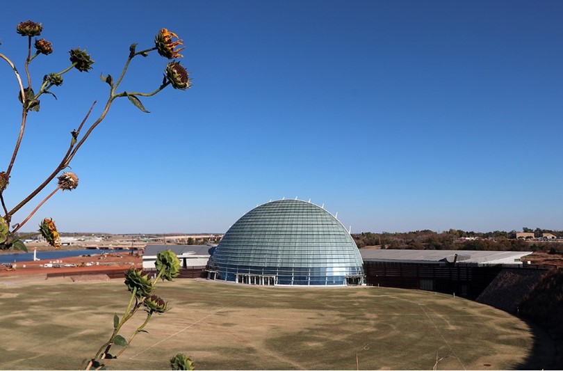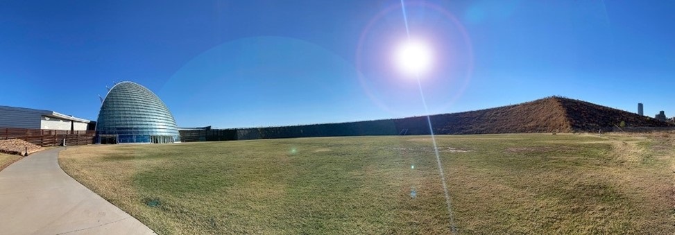 The First Americans Museum sits on a nearly 40-Acre site along the Oklahoma River at the crossroads of America (intersections of Interstates 35, 40, 235 and 44). There is a symbolic east-to-west arrival to the campus. This acknowledges that many First American doorways in cultural communities face eastward, greeting the new day.