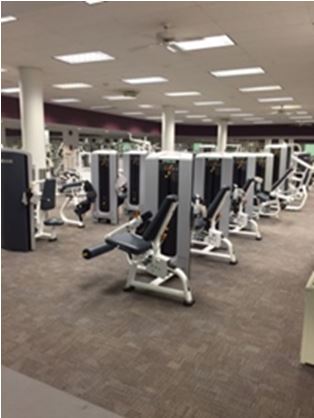 The Aero-Fitness Center offers (40) cardio units to include treadmills, upright and recumbent bikes, Precor Ellipticals, Stairmasters, Concept 2 Rowers, Cybex ARC trainers, etc. There are over 45 Cybex and Precor resistance training units. Participants also have access to Icarian plate-loaded equipment, a dumb-bell area, (2) Smith Press Machines, and (2) racquet ball courts.
